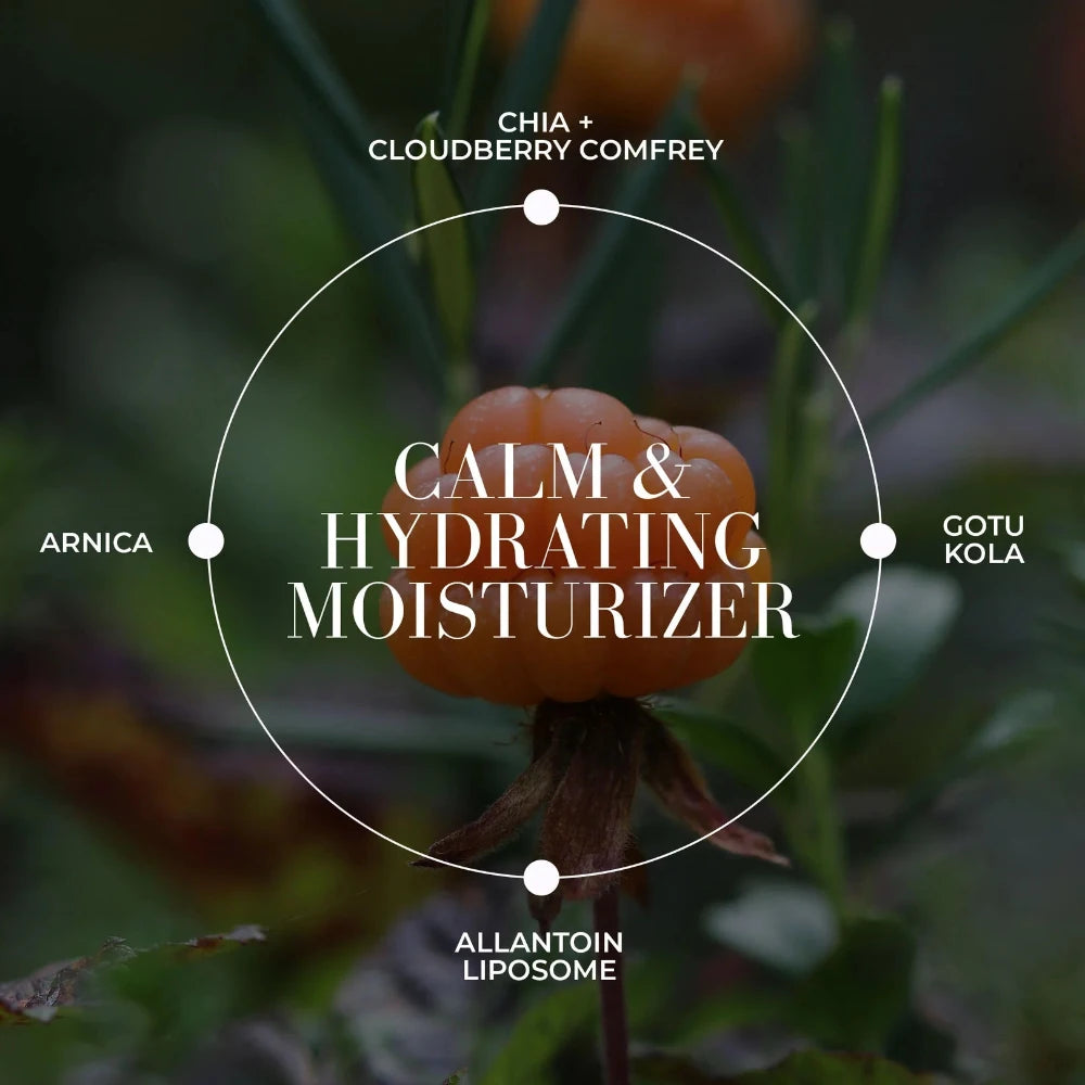 Hydrating and Calming Moisturizer with Cloudberry, Arnica and our proprietary Calm Comfrey Liposome Complex. Great for sensitive , stressed and rosacea prone skin.