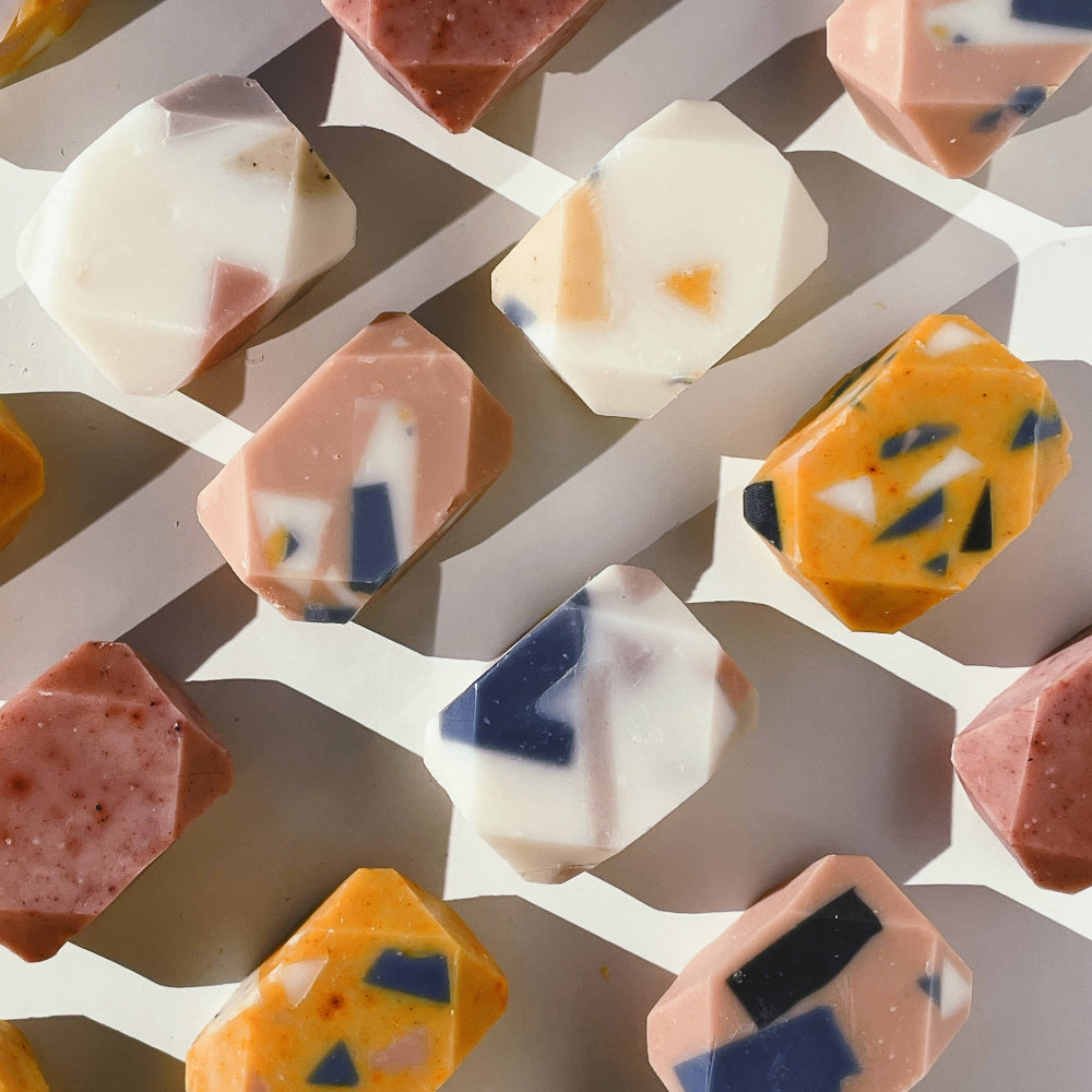 *soap embeds from gems include: clays, botanicals and essential oils.