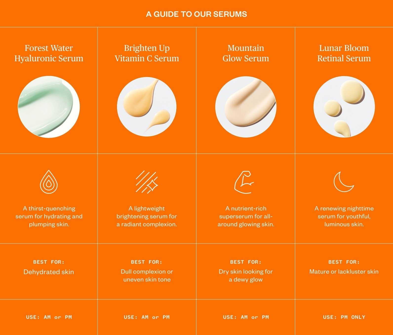 Mountain Glow is the techier, all-in-one super serum, focused on improving skin's appearance by combatting the visible signs of aging — especially wrinkles and sagging skin — while also boosting moisture and glow.
